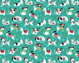 Northcott - Santa Paws / Turquoise / Tossed Dogs